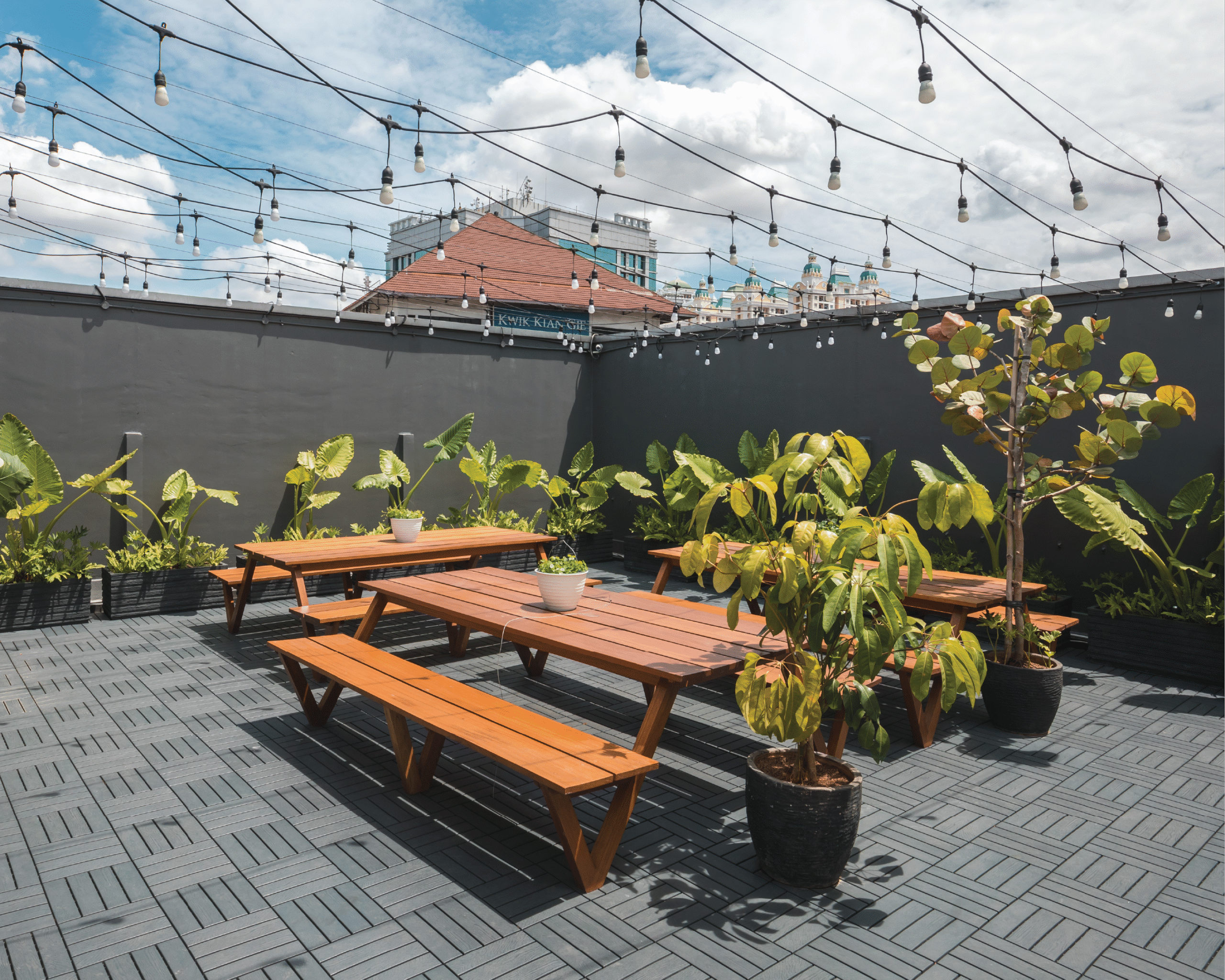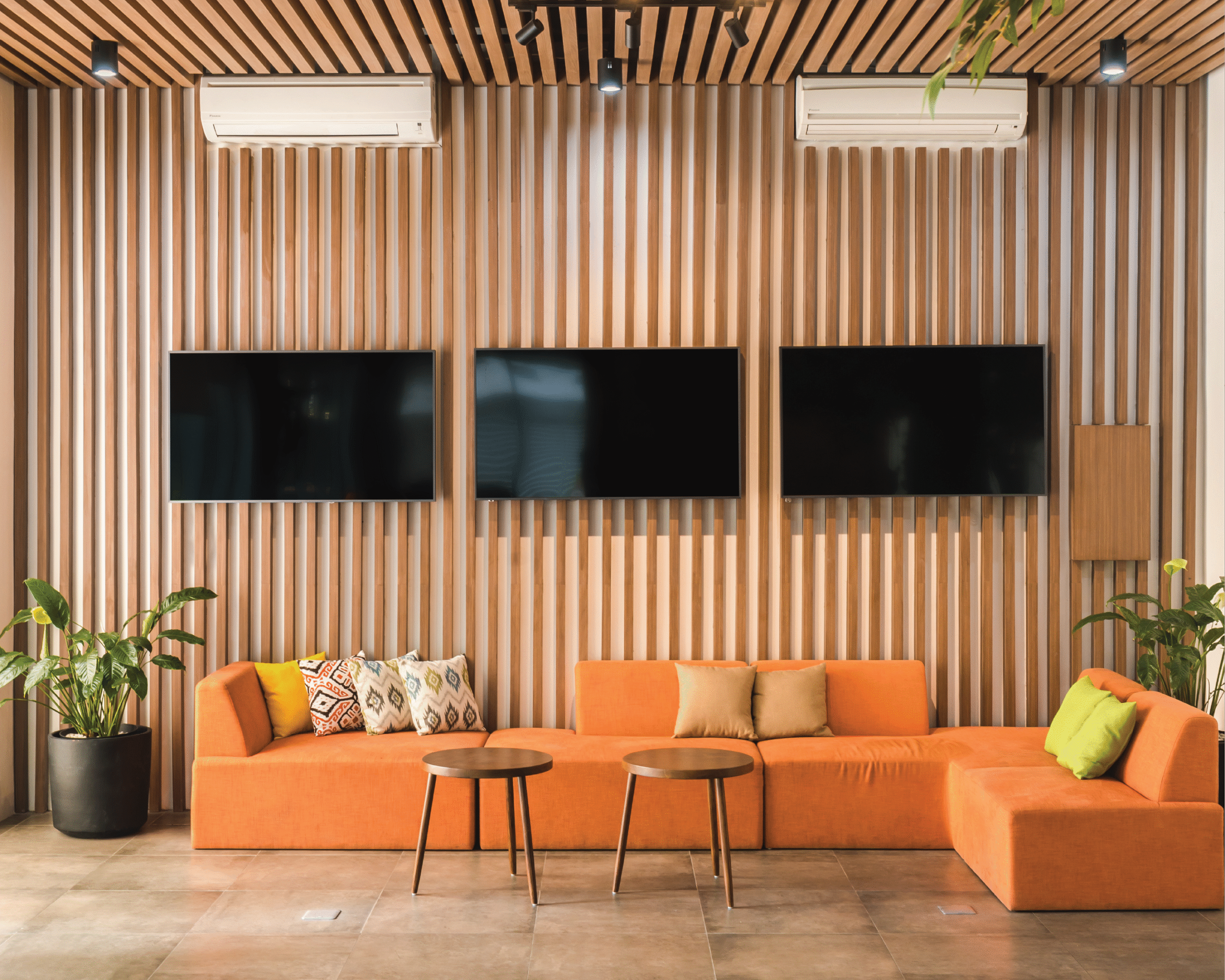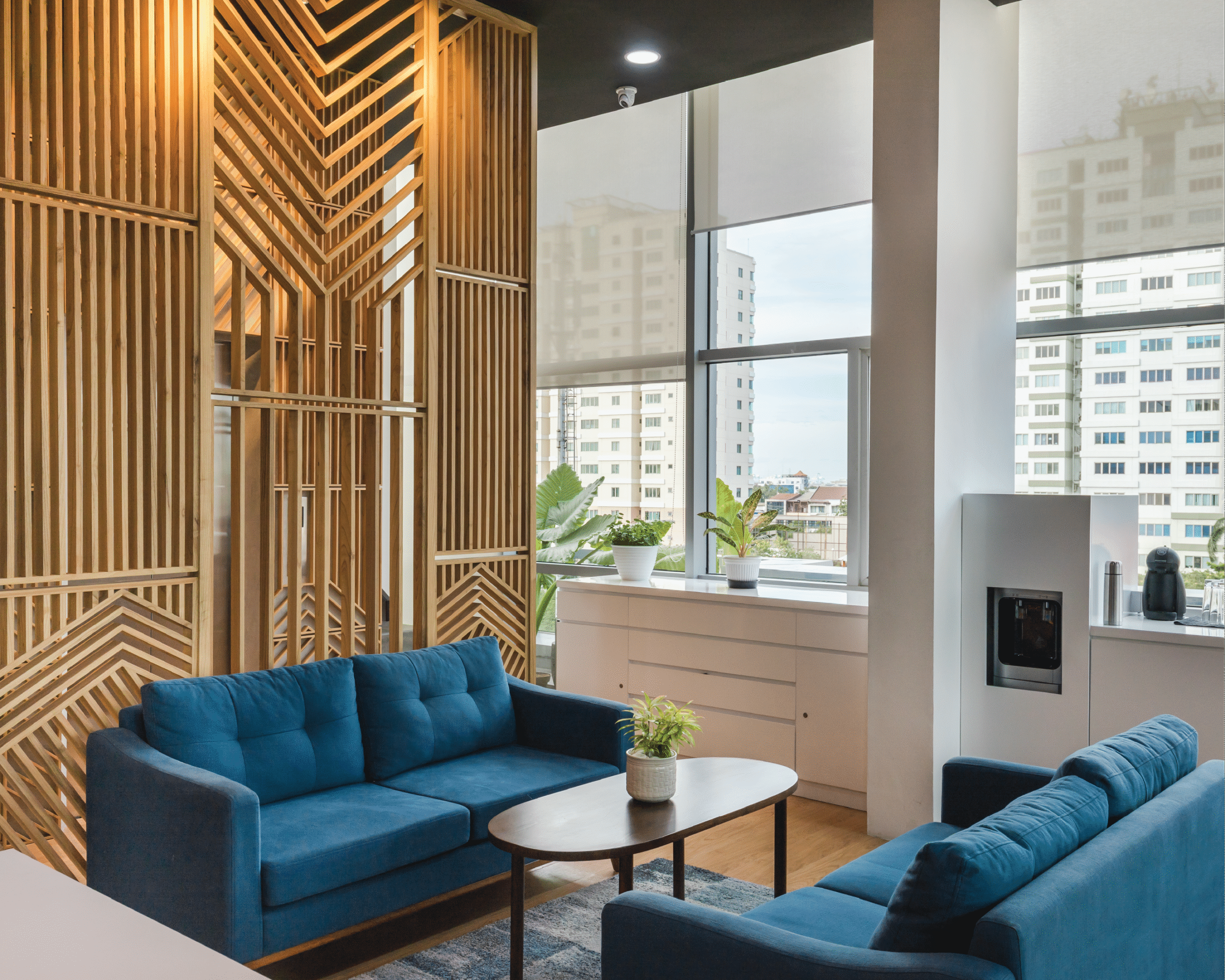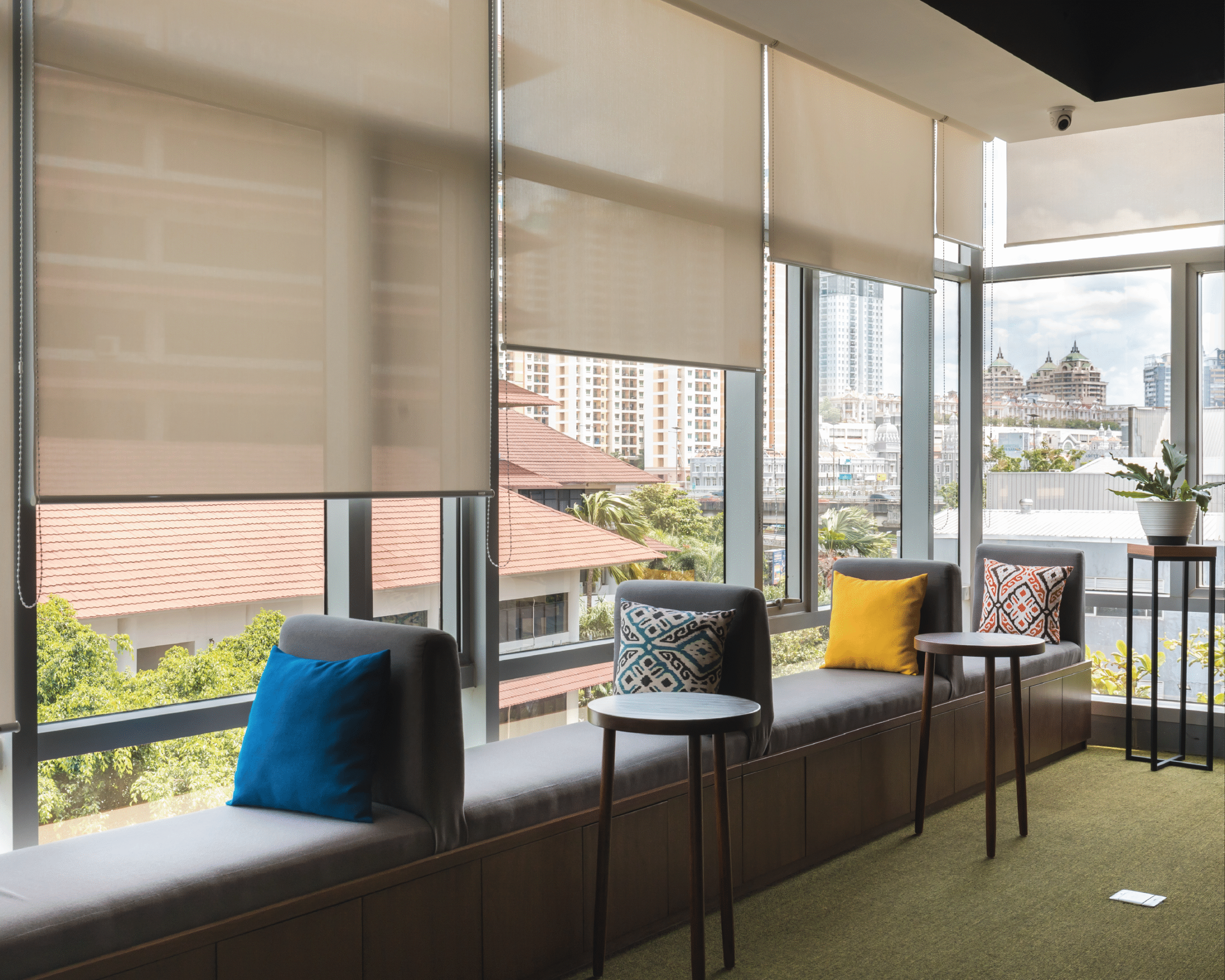 Palet warna vibrant menjadi elemen utama dalam menghadirkan energi positif di setiap lantai. Kombinasi warna kuning, biru, oranye, dan hijau dari tanaman menciptakan suasana kerja yang penuh semangat dan kolaboratif, menyerupai atmosfer kantor startup yang kreatif dan progresif. Setiap ruang dirancang fleksibel dan terbuka, mendukung interaksi serta inovasi yang menjadi inti budaya kerja digital di Indonesia masa kini.